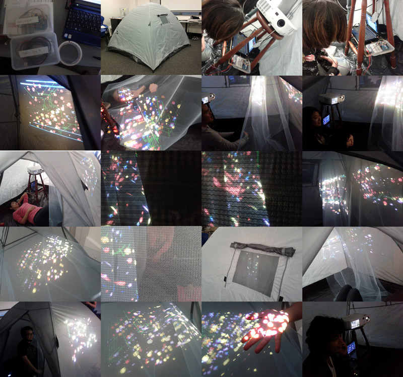 Materials: A tent/ Arduino UNO, Pulse sensor + computer /Projector / Tulle